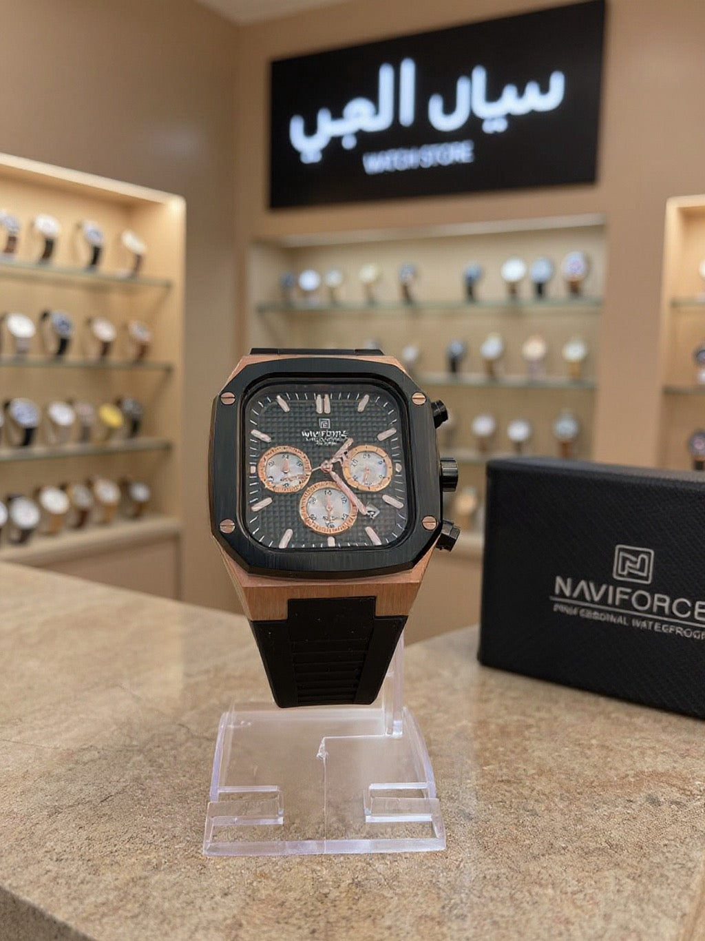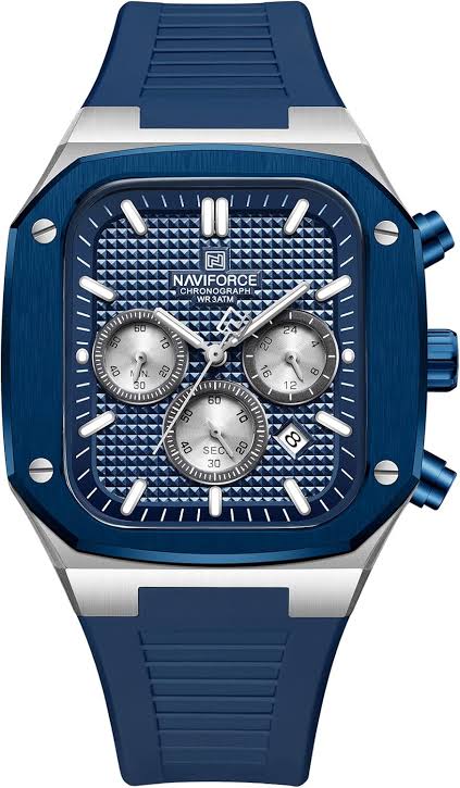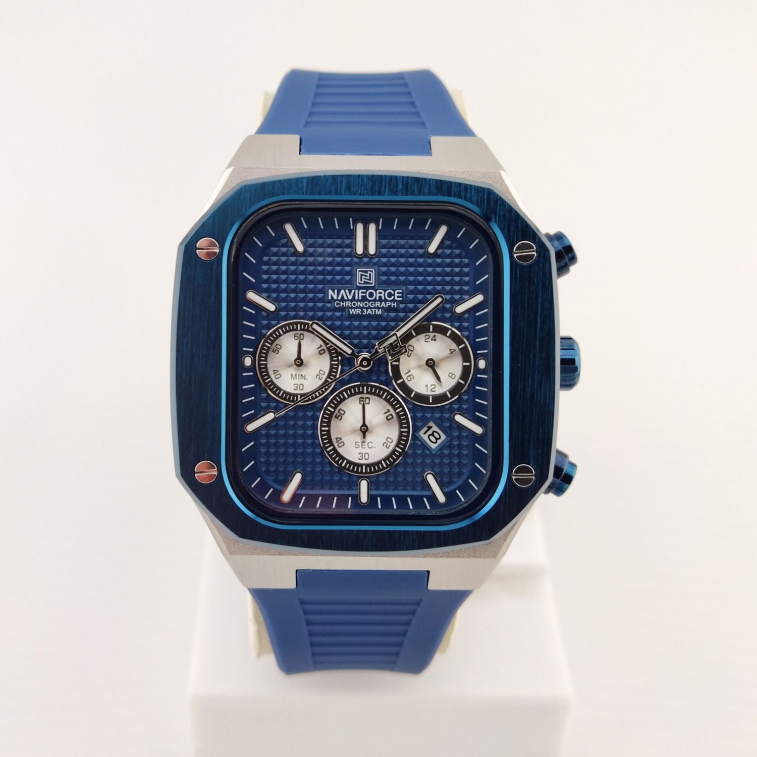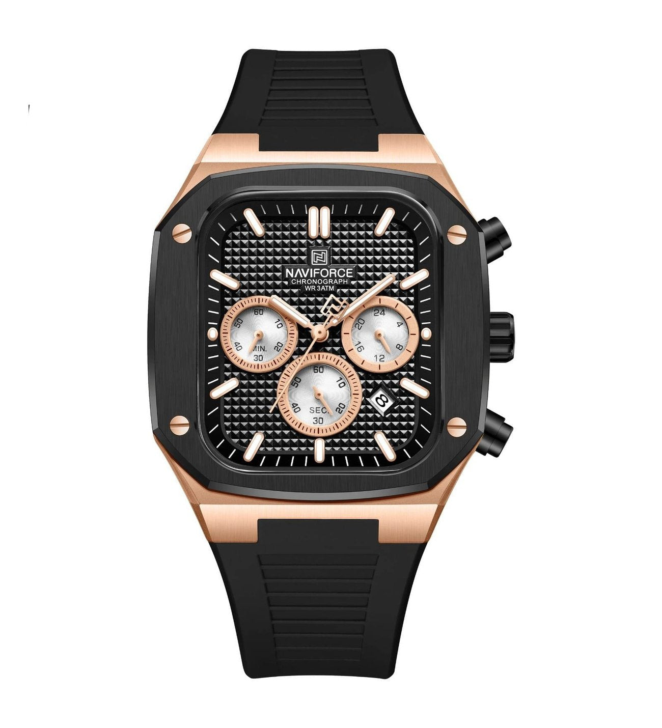 Naviforce Men's Square Classic Big Face Chronograph Chronographe étanche lumineux Lumineux Slicone Watch NF8037